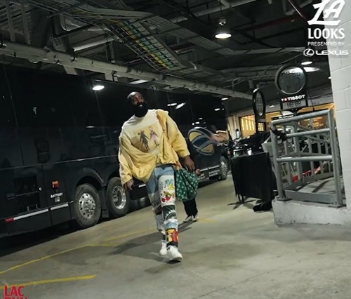 登哥你不要太帅!哈登嘻哈风造型抢镜 亮黄外套搭花牛仔潮范十足